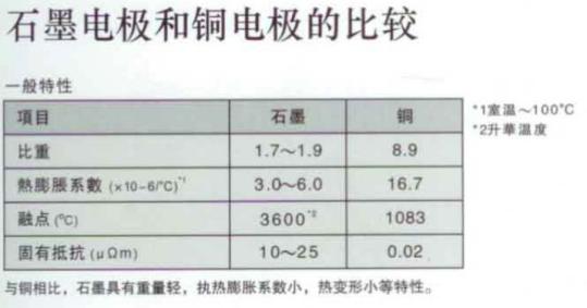 比重为1.7-1.9,为铜的1/5,对于大型电极可以极大减少工件重量,降低机床符合和人工调装难度。